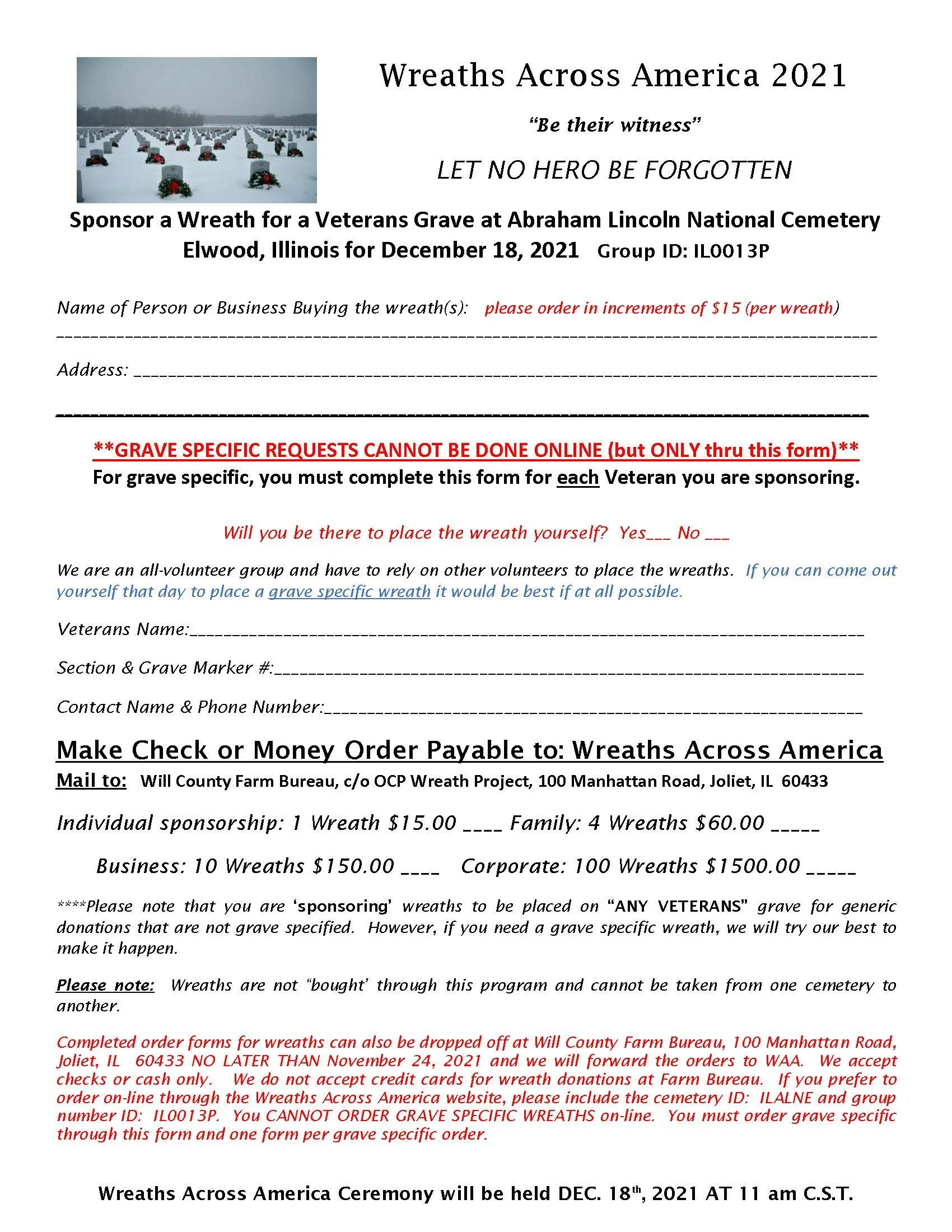Deadline For Wreaths Across America Wednesday, November 24, 2021 12:00 AM 11:55 PM Google Calendar ICS