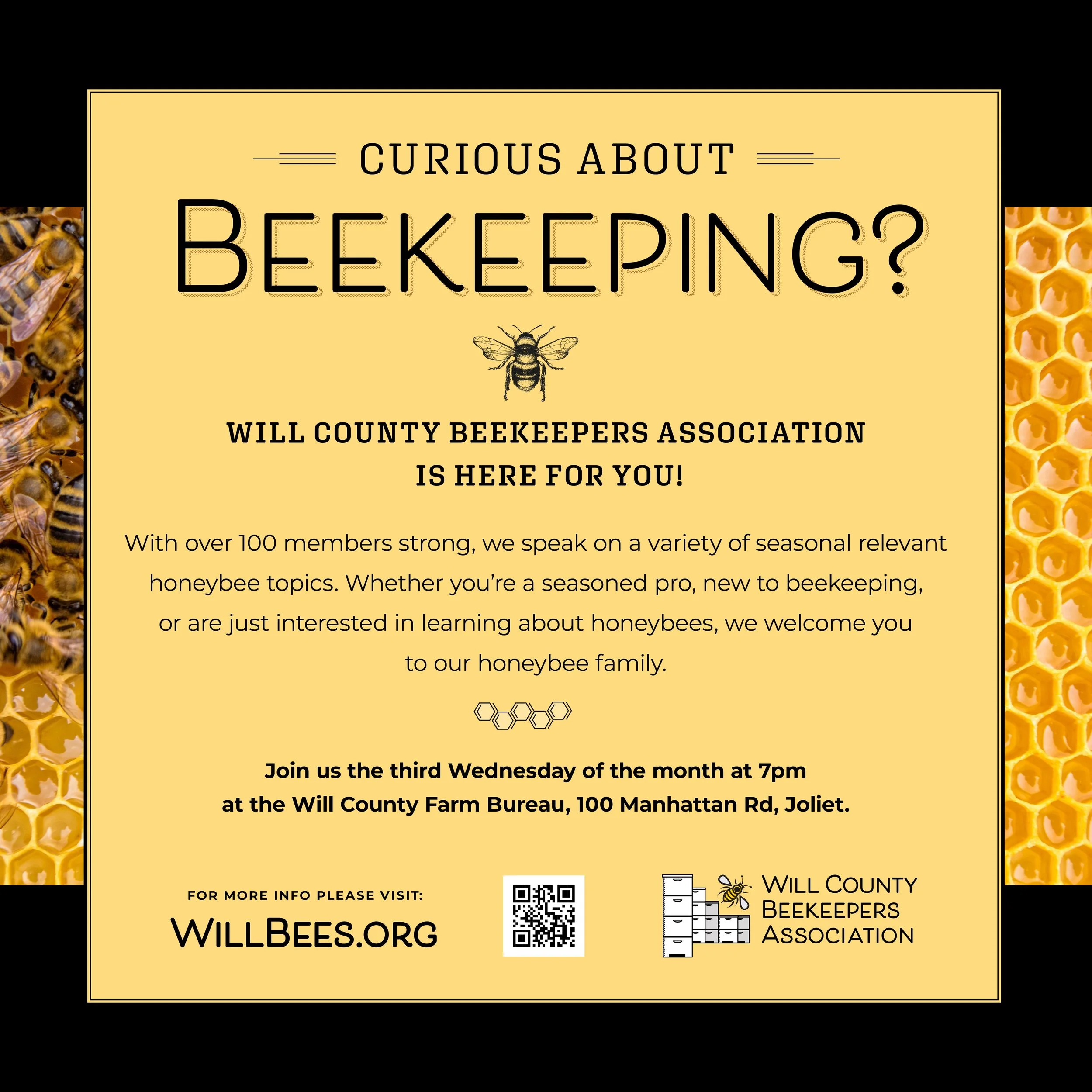 Will County Beekeepers Meet Wednesday, February 21, 2024 7:00 PM 8:15 PM Will County Farm Bureau 100 Manhattan Road Joliet, IL, 60433 United States (map) Google Calendar ICS